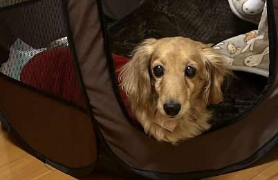 お散歩とご飯のとき以外は、ほとんど自分のサークルの中で過ごしていました。