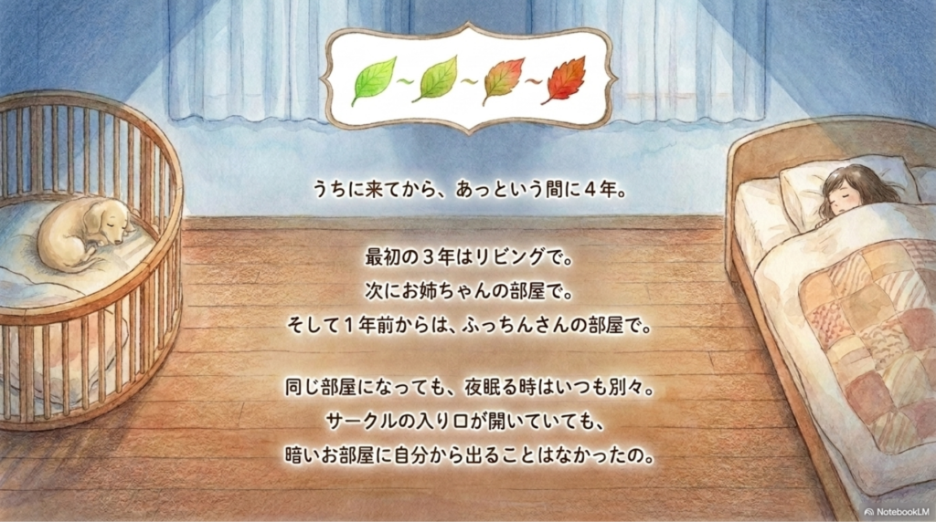 最初の3年はリビングでひとりで寝ていて🐶